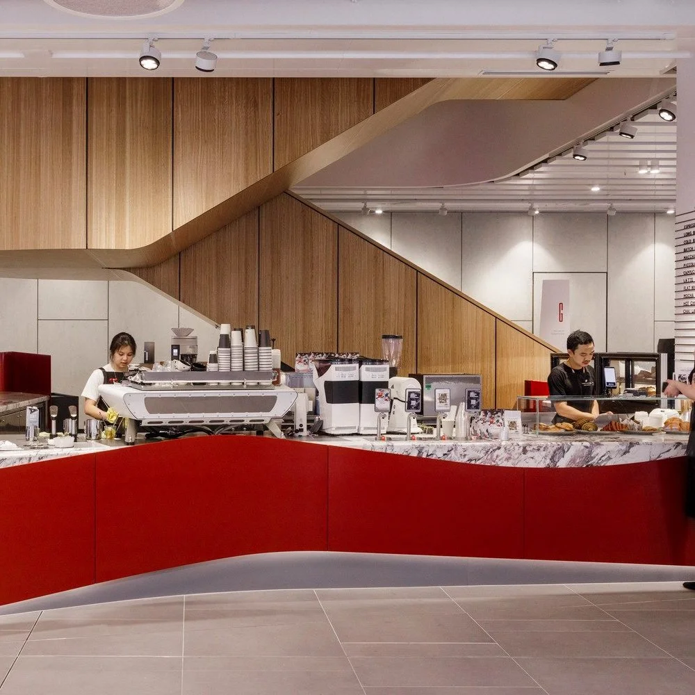 Situated in the lobby of International Tower 2 in the Barangaroo district, the cafe provides a nice space to hang out and enjoy a coffee. Organically designed, sophisticated espresso bar operates smoothly handling a high volume of espresso.