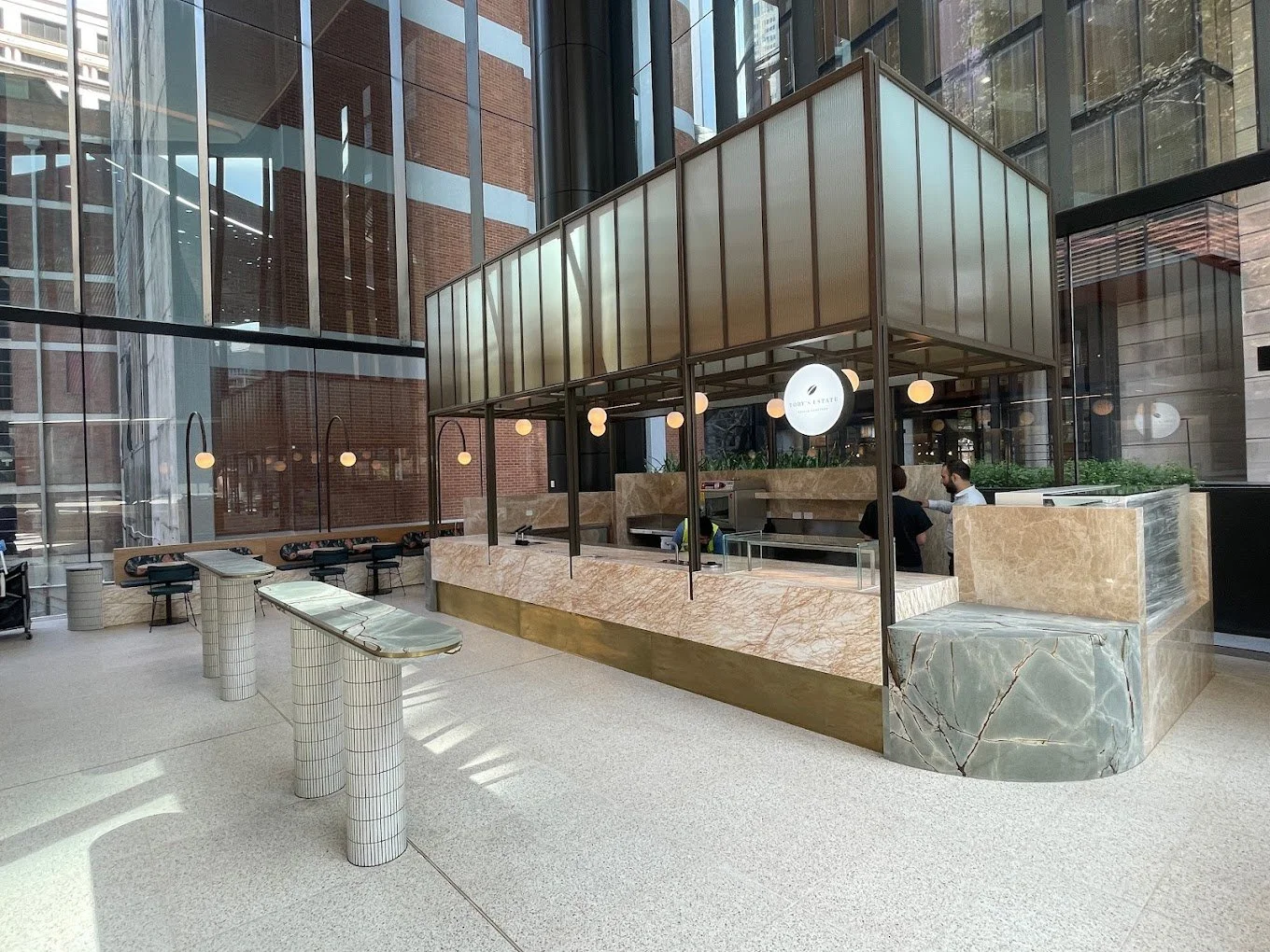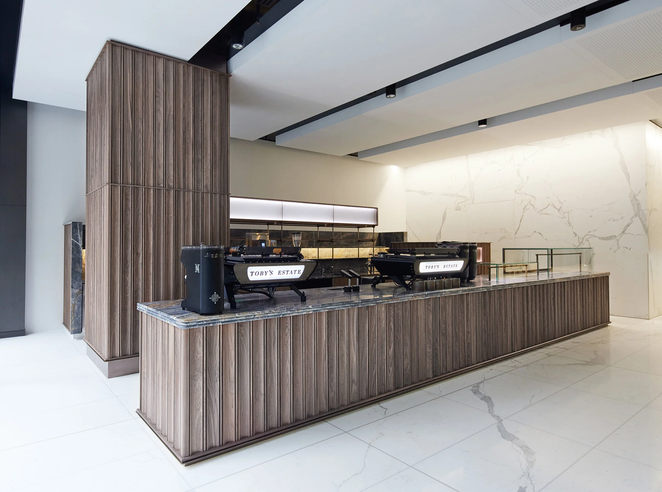In the lobby of Brookfield Place, you will be greeted by a design masterpiece. Contrasting white Calcutta marble floors with Italian Marble bench tops & Walnut wood will be sure to draw your attention. With state of the art coffee equipment, we are able to showcase world class coffee. From exquisite espresso coffee to outstanding filter options, you will find a brew for any coffee lover.
